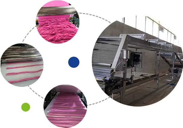 大型河粉機的工作主要是將磨好了的米漿自動輸入大型河粉機,通過大型河粉機蒸箱里面的蒸氣把它蒸熟成形,變成河粉···